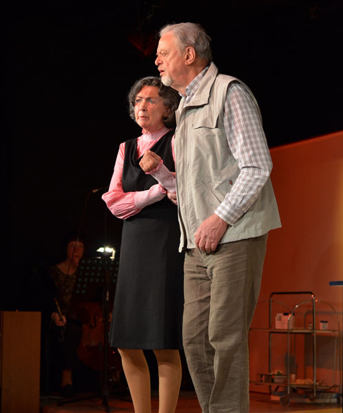 RosemaryGesellschaftsstück von Glyn Idris Jones Fotos 1-7: Leila Zaklan, Fotos: 8-12: Beate Staufenbiel Ein Sturz in der Wohnung mit bösen Folgen - ist man bereits in reiferem Alter, bedeutet das Alters- oder Pflegeheim. Eben dies passiert Rosemary, einer ehemaligen - und nicht wirklich erfolgreichen – Schauspielerin. Sie hat kaum Zeit, den Schock über diese Entmündigung zu verarbeiten, denn höchst eigenartiges Pflegepersonal und nicht weniger spezielle Mitbewohner, die auch noch dauernd Music Hall-Songs trällern, fordern ihre ganze Aufmerksamkeit. Rosemary gewöhnt sich an die neue Umgebung, sie gewöhnt sich an den Rollator, den sie anfänglich hasst und sie findet den Mitbewohner Walter nett, obwohl Walter manchmal mit Gedächtnislücken kämpft oder mehrere Tage wegen seiner Medikation nicht ansprechbar ist. Sie sitzen oft über ihre Puzzles gebückt und da fallen auch Worte über ihre Verwandtschaft, über ihre Erbangelegenheiten, über ihre Kinder, über die Vergangenheit. Das Leben könnte so weiter gehen, geschähe nicht plötzlich Unerwartetes… Glyn Jones, aus Südafrika stammender erfolgreicher Londoner Theater- und Drehbuchautor, Schauspieler und Regisseur, hat das noch nicht aufgeführte Bühnenmanuskript von „Rosemary“ vor seinem Tod 2014 noch mit der Bielefelder Übersetzerin Beate Staufenbiel für die Übertragung ins Deutsche vorbereitet. Das Mobile Theater hat vor zwei Jahren bereits Jones "Das Lachen der Hyäne" mit großem Erfolg uraufgeführt. Mit Stolz bringt es diese zweite Jones-Uraufführung heraus, denn „Rosemary“ bezeugt einmal mehr den ungewöhnlichen Umgang des Autors mit ernsten Themen: Nonchalanter englischer Konversationsstil, sarkastischer Humor und zärtliche Anteilnahme für seine Figuren schaffen neben nostalgischem Schwelgen in englischen Music Hall-Hits ein unverwechselbares Flair auf der Bühne. Mit Farah Elouahabi, Ulrike Kleinehagenbrock, Marlene Müller, Benjamin Bloch, Thomas Kehl.