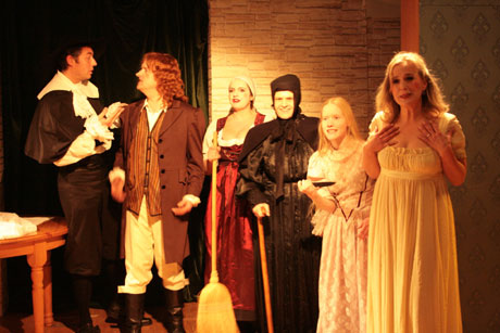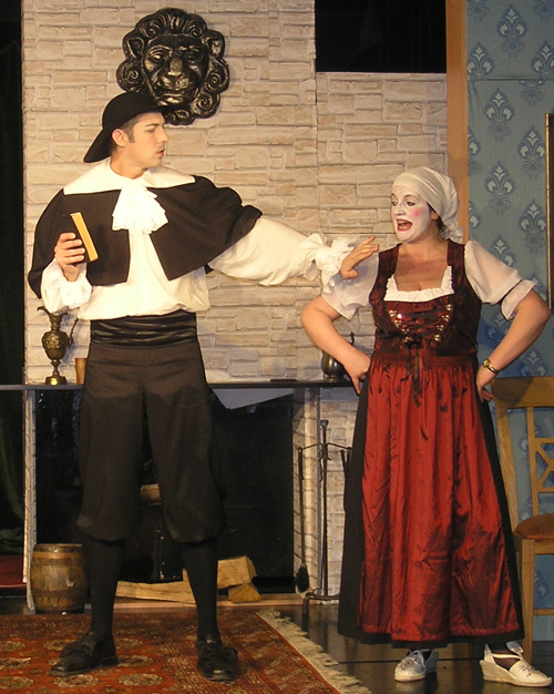 Der Tartuffevon Jean Baptiste Poquelin, genannt Molière Fotos 1-4: Simon Maske, Fotos: 5-7: Mobiles Theater Bielefeld Ein gerissener Schwindler macht sich im Hause des gutgläubigen Großbürgers Orgon an dessen Vermögen und Ehefrau heran. Unter Vortäuschung fundamentaler Frömmigkeit und Nächstenliebe gewinnt er Orgons Vertrauen. Die restliche Familie geht dabei fast zugrunde, gäbe es da nicht am Ende eine rettende List und die Gnade des Königs. Dieses meist gespielte Stück Molières besitzt eine unglaubliche Aktualität. Tartuffe ist ein religiöser Fundamentalist – heute könnte er auch als Scientologe, Sektenführer, Evangelikaler oder Hassprediger auftreten. Schon zu Molières Zeiten hat sein „Tartuffe“ beachtlichen Wirbel und mehrere Verbote erzeugt. Damals fühlte sich eine streng konservative Bruderschaft der katholischen Kirche angesprochen. Doch wäre das Stück längst schon vergessen, verfügte es nicht auch über Humor und Erotik - der Feind aller Strenggläubigen ist heute wie damals der Eros. Nicht nur der „Tartuffe“ ist zu erleben, sondern auch in einer Rahmenhandlung, wie Molière mit seinen Schauspielern den „Tartuffe“ erarbeitet: Dazu gehören die besonderen Umstände der Entstehung, Verbote durch einflussreiche kirchliche Mächte und nicht zuletzt die die Gepflogenheiten und Befindlichkeit seiner Theatercompagnie, einstmals als „Illustre Théâtre“ gegründet. Die Schauspieltruppe des Mobilen Theaters adaptiert Molières selten gespieltes „Stegreifspiel von Versailles“, eine Art Rollenspiel, in dem er alle Mitspieler vorführt, die für König Ludwig XIV in kürzester Zeit ein Stück auf die Beine stellen sollen. Der junge Ludwig wird der Gönner der Truppe und seine Begeisterung für den „Tartuffe“ hat Molière wohl vor der Verfolgung durch politische und kirchliche Kreise bewahrt. Originale Musik von Lully und Elemente der Commedia dell’Arte versetzen die Zuschauer in eine barocke Welt, die mit der unsrigen immer noch viele Berührungspunkte aufweist. Mit Ulrike Fauteck, Violeta Gomez, Ulrike Kleinehagenbrock, Anja Schäfferling, Karl Pühmeyer, Peter Krudup, Simon Maske, Manuel Stemberg, Albrecht Stoll, Andreas Thiemann. Regie: Albrecht Stoll