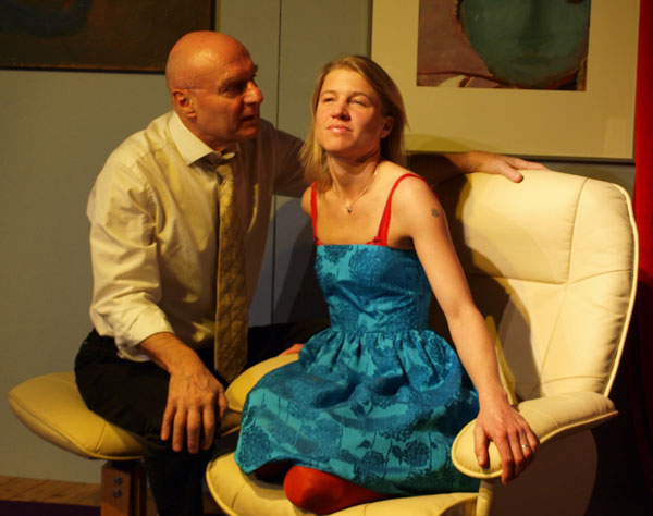 AchterbahnKomödie von Éric Assous Fotos: Mobiles Theater Bielefeld Strohwitwer, schon über die besten Jahre hinaus, schleppt in einer Bar junges Betthäschen ab – was so klischeebehaftet beginnt, entpuppt sich als Stück voller Finten und Überraschungen in bester französischer Komödientradition. Schnell stellt sich heraus, dass die junge Dame keineswegs ist, was sie scheint; aber was ist sie - Privatdetektivin? Kosmetikerin? Undercover-Reporterin für eine Frauenzeitschrift? Oder etwa Callgirl? Der Zuschauer nimmt bald an einem spannenden Katz- und Mausspiel teil, in dem die junge Frau die Fäden zieht. Was will sie eigentlich wirklich von dem alternden Casanova? Der Abend wird zu einer Berg- und Tal-Fahrt der Emotionen mit rasanten Dialogen in einem komisch-bissigen Verwirrspiel, dessen Geheimnis - wie sich das gehört - erst ganz am Schluss aufgedeckt wird. Éric Assous ist einer der bekanntesten Radio-, Fernseh-, Kino- und Theaterautoren Frankreichs. Seit 1992 schreibt er Stücke für den Boulevard, die um die Thematik irritierender Partnerbeziehungen kreisen, wobei die Männer die Schwachen sind und die Frauen das Zepter führen. Unter der Regie Albrecht Stolls spielen Esther Maria Justus und Andreas Wenzel.