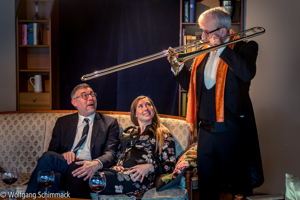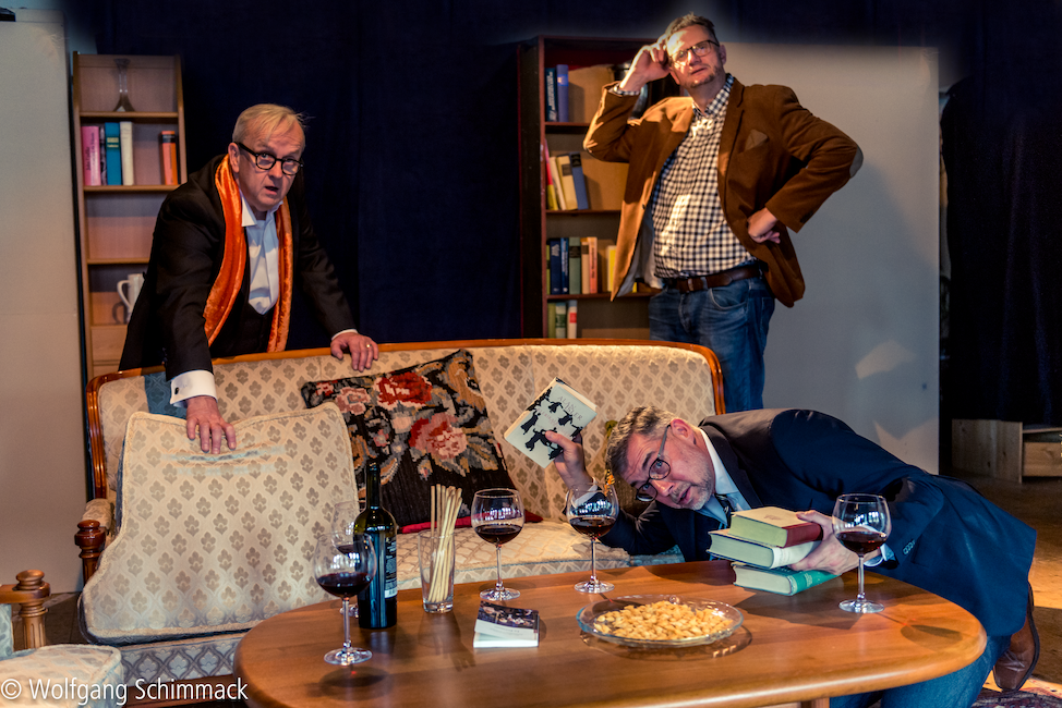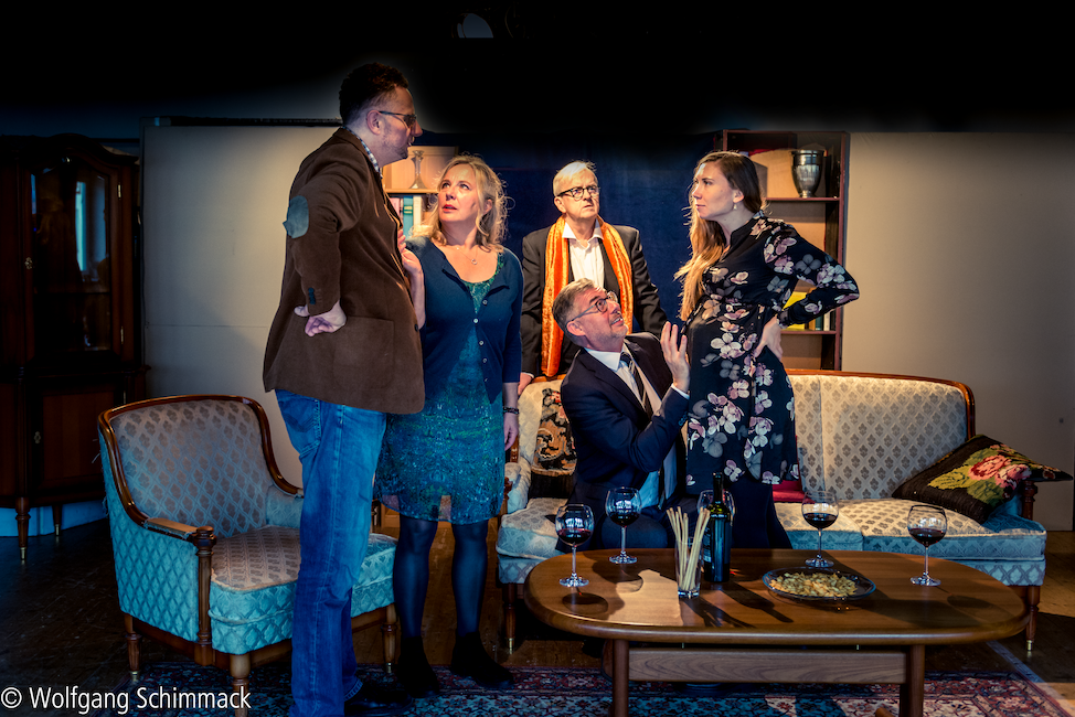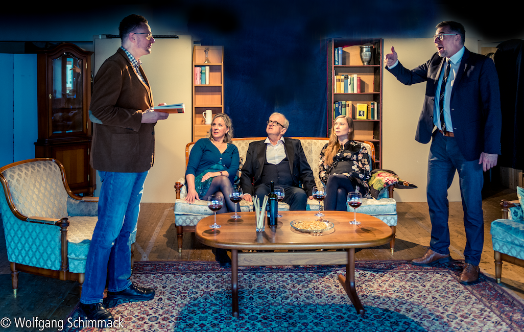 Der Vorname (Le prénom)von Matthieu Delaporte und Alexandre de La Patelliere, Deutsch von Georg Holzer Fotos: Wolfgang Schimmack Klicken Sie hier und sehen Sie, was die Presse meint... Ein gemütlicher Abend soll es werden in der Wohnung des Literaturprofessors Pierre Garaud und seiner Frau Elisabeth. Nur Freunde und Familie sind zu Gast: Elisabeths Bruder Vincent mit seiner schwangeren Lebensgefährtin Anna, dazu Claude Gatignol, Posaunist im Rundfunkorchester und Freund seit Kindertagen. Vincent ist ein begnadeter Selbstdarsteller, der keine Gelegenheit auslässt, zu provozieren. Er enthüllt den fassungslosen Freunden den geplanten Vornamen seines noch ungeborenen Sohnes: Adolf. Die Debatte um die Frage, ob man sein Kind nach Hitler benennen darf, ist nur eine der hitzigen Diskussionen dieses Abends, aber sie führt dazu, dass das bisher so gemütliche Familientreffen aus dem Ruder läuft. Die Jugendfreunde Pierre und Vincent werfen sich plötzlich Wahrheiten an den Kopf, die man dem familiären Frieden zuliebe bisher verschwiegen hatte. Und wie steht es wirklich um das Glück von Pierre und Elisabeth? Warum wird Claude, der stille Musiker, wie ein rohes Ei behandelt? Und was steckt hinter Vincents Egomanie? Mit Lust und Niveau werden Wortgefechte ausgetragen - doch die Contenance verlieren die Alphatiere erst, als die Frauen in einer Weise ins Spiel kommen, die sich niemand hat träumen lassen. Wortwitz und Dialoge in der besten Tradition der französischen kritischen Gesellschaftskomödie treiben atemlos eine Handlung voran, die bei aller Komik auch manche ahnungsvollen Einblicke in die Abgründe der Figuren erlaubt. Mit: Ulrike Kleinehagenbrock, Barbara Stoll, Peter Krudup von Behren, Harald Kleine Kracht, Andreas Thiemann