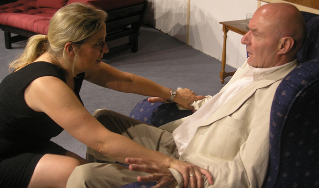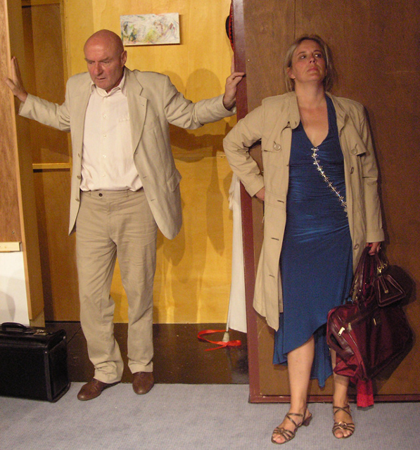 Kleine EheverbrechenStück von Eric-Emmanuel Schmitt Fotos: Mobiles Theater Bielefeld Krimiautor Gilles hat nach einem Unfall sein Gedächtnis verloren- zumindest scheint es so. Lisa ist seit 15 Jahren mit ihm verheiratet – zumindest sagt sie das. Um etwas über sein früheres Leben zu erfahren, ist Gilles auf Lisas Erzählungen angewiesen. Aber was verschweigt sie ihm? War sie etwa selber am Unfall ihres Mannes beteiligt? Sagt sie ihm die Wahrheit über ihr wundervolles Zusammenleben, ihre Liebe? Was wäre, wenn sie lügt? Vielleicht ist auch alles ganz anders: Spielt etwa Gilles ein falsches Spiel? Erinnert er sich an mehr als er zugibt? Ein faszinierendes Verwirrspiel entwickelt sich, in dem Frau und Mann einen erbitterten, oft grotesken Verbalkampf ausfechten, die Situation immer wieder kippt und nichts so ist, wie es scheint. Als alles ans Licht kommt, ist schließlich nichts mehr wie es war. In der Inszenierung Albrecht Stolls spielten Ulrike Kleinehagenbrock