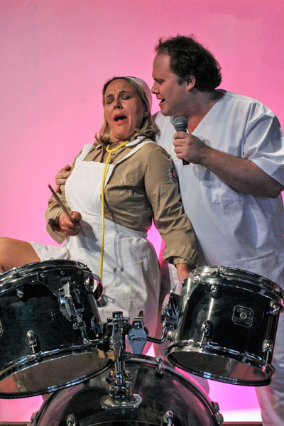 RosemaryGesellschaftsstück von Glyn Idris Jones Fotos 1-7: Leila Zaklan, Fotos: 8-12: Beate Staufenbiel Ein Sturz in der Wohnung mit bösen Folgen - ist man bereits in reiferem Alter, bedeutet das Alters- oder Pflegeheim. Eben dies passiert Rosemary, einer ehemaligen - und nicht wirklich erfolgreichen – Schauspielerin. Sie hat kaum Zeit, den Schock über diese Entmündigung zu verarbeiten, denn höchst eigenartiges Pflegepersonal und nicht weniger spezielle Mitbewohner, die auch noch dauernd Music Hall-Songs trällern, fordern ihre ganze Aufmerksamkeit. Rosemary gewöhnt sich an die neue Umgebung, sie gewöhnt sich an den Rollator, den sie anfänglich hasst und sie findet den Mitbewohner Walter nett, obwohl Walter manchmal mit Gedächtnislücken kämpft oder mehrere Tage wegen seiner Medikation nicht ansprechbar ist. Sie sitzen oft über ihre Puzzles gebückt und da fallen auch Worte über ihre Verwandtschaft, über ihre Erbangelegenheiten, über ihre Kinder, über die Vergangenheit. Das Leben könnte so weiter gehen, geschähe nicht plötzlich Unerwartetes… Glyn Jones, aus Südafrika stammender erfolgreicher Londoner Theater- und Drehbuchautor, Schauspieler und Regisseur, hat das noch nicht aufgeführte Bühnenmanuskript von „Rosemary“ vor seinem Tod 2014 noch mit der Bielefelder Übersetzerin Beate Staufenbiel für die Übertragung ins Deutsche vorbereitet. Das Mobile Theater hat vor zwei Jahren bereits Jones "Das Lachen der Hyäne" mit großem Erfolg uraufgeführt. Mit Stolz bringt es diese zweite Jones-Uraufführung heraus, denn „Rosemary“ bezeugt einmal mehr den ungewöhnlichen Umgang des Autors mit ernsten Themen: Nonchalanter englischer Konversationsstil, sarkastischer Humor und zärtliche Anteilnahme für seine Figuren schaffen neben nostalgischem Schwelgen in englischen Music Hall-Hits ein unverwechselbares Flair auf der Bühne. Mit Farah Elouahabi, Ulrike Kleinehagenbrock, Marlene Müller, Benjamin Bloch, Thomas Kehl.