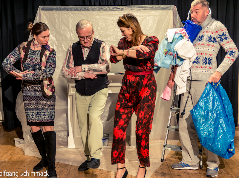 Venedig im Schnee (Venise sous la neige)Komödie von Gylles Dyrek, deutsch von Annette und Paul Bäcker Fotos: Wolfgang Schimmack Klicken Sie hier und sehen Sie, was die Presse meint... Zumindest die Stimmung ist eiskalt zu Beginn der Komödie: Wo ist Chouvenien wohl? Irgendwo im Balkan. Sind die Leute da nicht furchtbar arm? Kann man diesem Flüchtling nicht eine alte Decke schenken? Und auch noch einen Fernseher, den man nicht mehr braucht? Und anderes, das nicht mehr funktioniert? Mit diabolischem Vergnügen steigt Patricia in dieses Spiel ein: Sie greift freudig zu, als ihr das naive Gastgeberpaar Geschenke für die notleidende Bevölkerung ihres Heimatlandes aufdrängt, ja, sie macht sich einen Heidenspaß daraus, sie zu immer neuen 'guten Taten' für ihre Landsleute zu animieren, bis das Ganze fast zur Tragödie für beide Paare ausartet. Gilles Dyrek hat vor mehr als 20 Jahren diese böse Zeitsatire brüllend komisch verpackt in Paris auf die Bühne gebracht. Merkwürdigerweise hat sie seitdem nicht an Aktualität verloren. Nicht nur in Frankreich ist diese Komödie Kult, auch der Film hat sie längst entdeckt. Mit: Alicia Dawidowski, Barbara Stoll, Peter Krudup von Behren, Andreas Thiemann